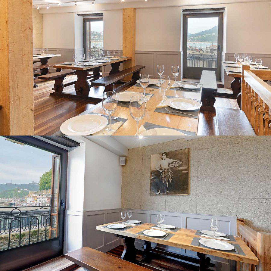 En nuestro comedor principal, con una capacidad de hasta 65 personas, podrás ver antiguas fotografías de hombres de la mar y remeros de Donostia, antaño muy populares. Unas magníficas vistas despejadas de la bahía de San Sebastián terminan de completar el encanto del salón, ideal para comidas y cenas para grupos.